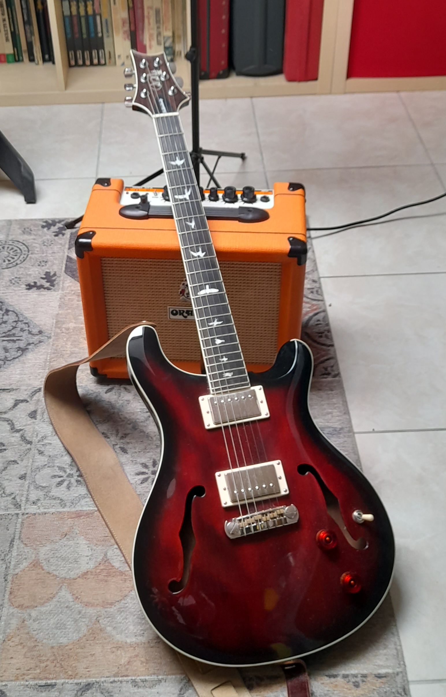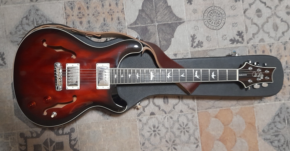 PRS era un marchio prestigioso che mi mancava ma che avevo sempre evitato, sia per gli alti costi, sia perché non aveva quell'allure, quell'aspetto classico e un po' retrò che si addicevano alla musica che amavo e facevo. La serie economica SE-Student Edition inoltre era indiscutibilmente più brutta e non presentava quelle curve armoniose che riconoscevo alle serie maggiori. L'unica eccezione era, appunto, questa hollowbody marchiata SE ma graziosa, armoniosa, ben fatta. L'avevo provata a suo tempo, mi aveva sorriso ma ancora non era scattata quella scintilla che fa mettere mano al borsellino per tacitare, sia pure per poco, la bramosia da GAS (Gear Acquisition Syndrome). Com'è, come non è, nel 2026 ho cominciato a sfoltire la collez... ehm... la famigliola musicale, ricavandone così spazio nell'armadio e libertà di manovra e coscienza per levarmi qualche sfizio da troppo tempo trattenuto. In realtà mi aveva intrigato un modello vagamente jazz, la Godin 5th Avenue con pick up P90 che avevo visto e analizzato in rete. Ma, un attimo prima di decidermi, mi accorsi che la nuova arrivata mi creava più dubbi e titubanze che voglie e così, con una piroetta degna di Nureyev, mi sono dichiarato a questa elegante signorina, scoprendo fra l'altro con stupore e gioia che apparteneva ad un chitarrista storicamente membro del gruppo blues Model-T Boogie, che mi erano stati maestri e ispiratori sin dagli anni '90. E' leggera, ottimamente rifinita, con una voce equilibrata e una dinamica impressionante che affida al musicista l'onore e l'onere di stabilire il suono finale. Un ponte vecchio stile, con le corde che entrano dall'interno, girano intorno e poi corrono sulla tastiera. I classici segna posizione a forma di volatile, marchio di fabbrica di Paul Reed Smith, impreziosiscono il tutto. Ok, è fatta: è qui. |